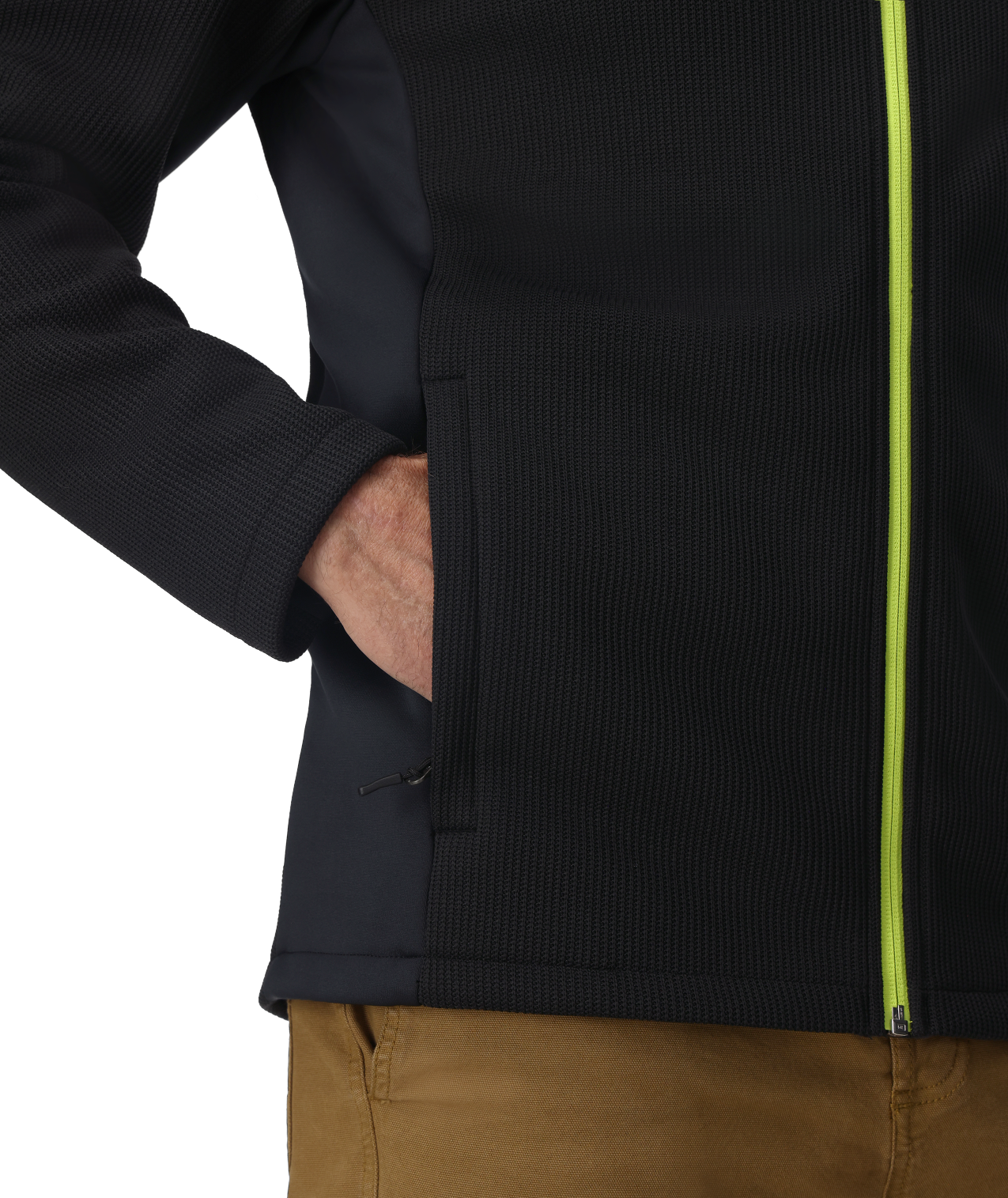 The Bandit Jacket blends a classic alpine sweater style with a modern twist. Lightweight polyester sweater knit bonded to anti-pill fleece, stretch side and arm panels, and a sleek chest pocket adds functionality to this versatile layer that is perfect for a day on the mountain.
