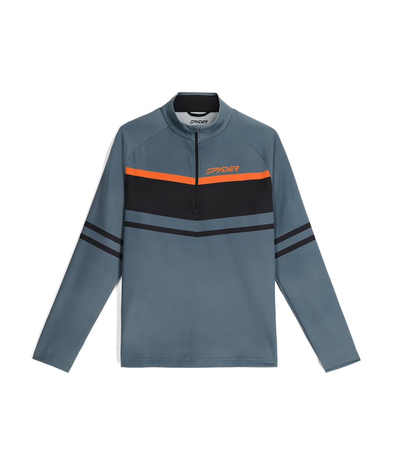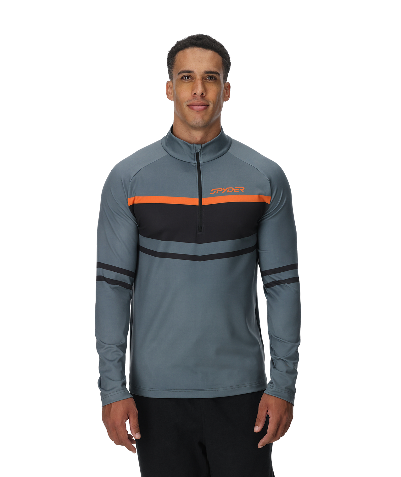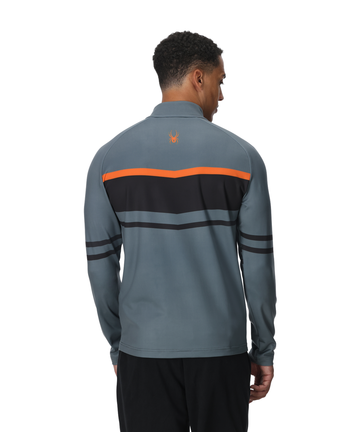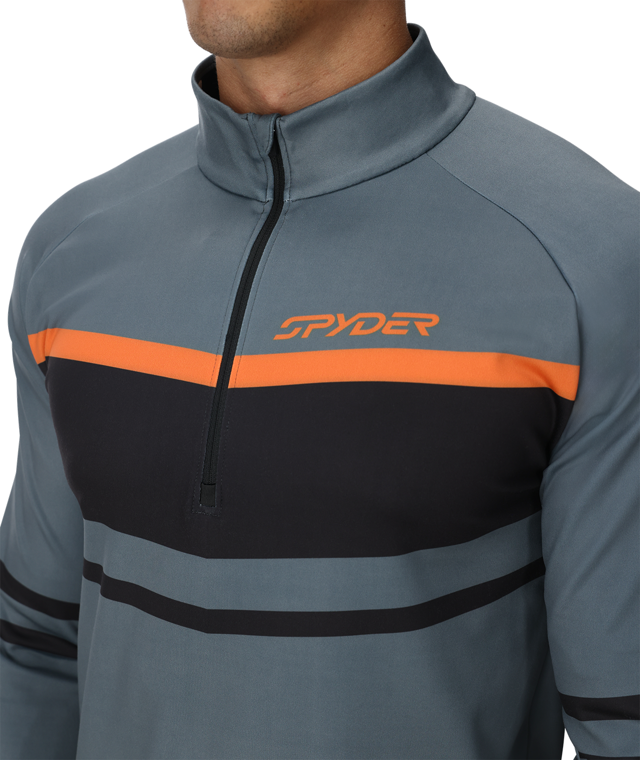 The Legacy 1/2 zip t-neck, made from 83% polyester and 17% elastane stretch knit fabric, offers wicking properties alongside UPF 50+ sun protection. It features a YKK® center front zipper with a double-layer gusset behind it for added wind protection. It is enhanced with custom Spyder seasonal graphics and an interior locker loop.