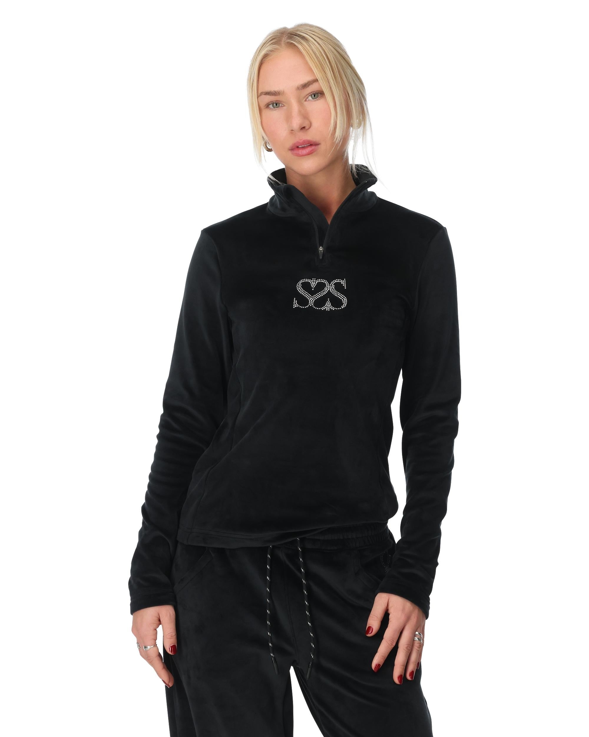 Serving Y2K realness, this velour quarter-zip is basically your middle school dream—just glow’d up. Complete with a bedazzled logo front and center, it’s giving “main character at the mall” energy, and honestly? We support it.
