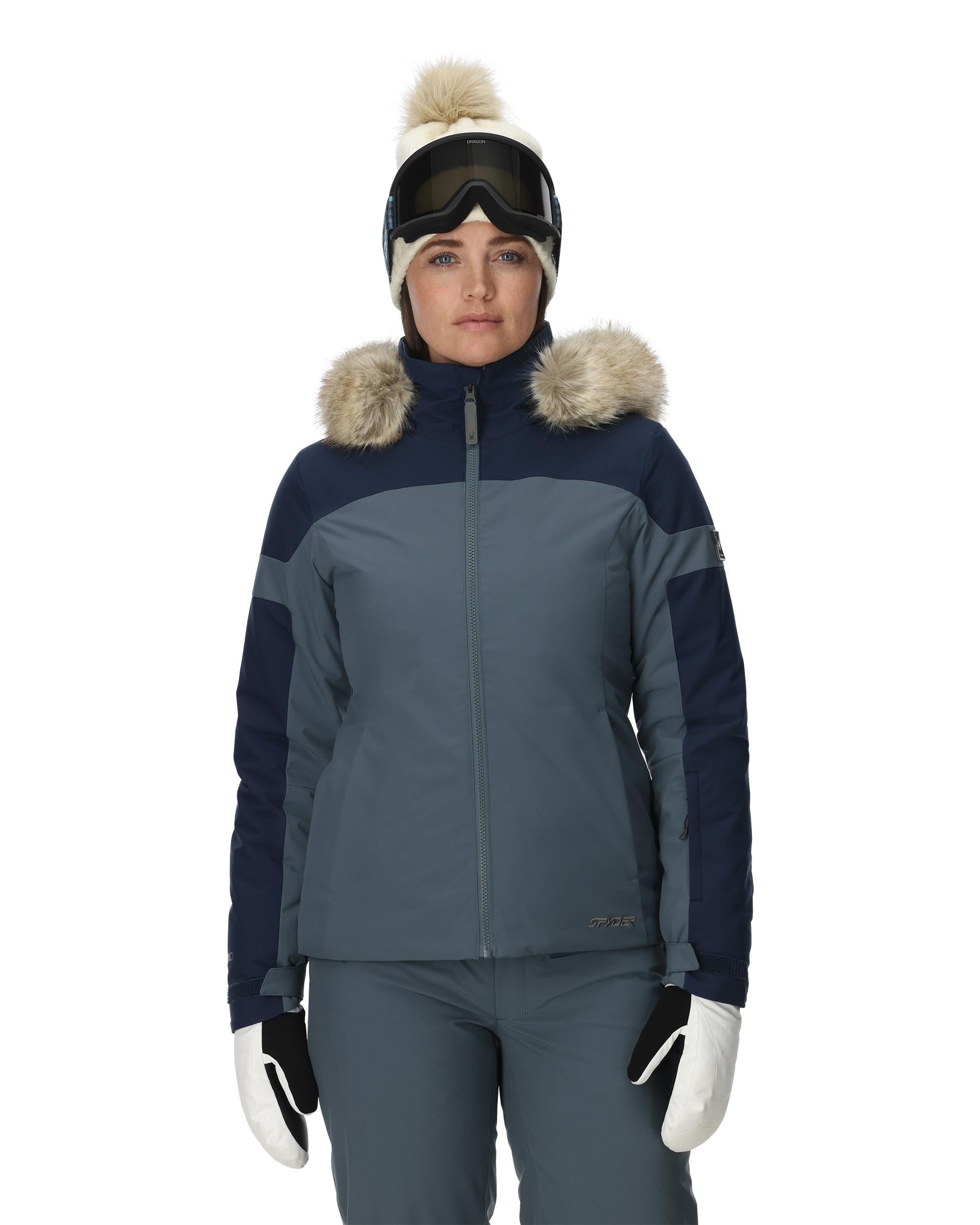 The Vida jacket combines style and functionality with classic design lines and a luxurious faux fur hood. It's made with 4-way stretch EXO SHIELD technology, 100 grams of PrimaLoft® Black insulation, and a 20K laminate, providing warmth and protection as temps drop. The Vida also features essential ski features like a powder skirt, inner pockets, and underarm venting for technical comfort.